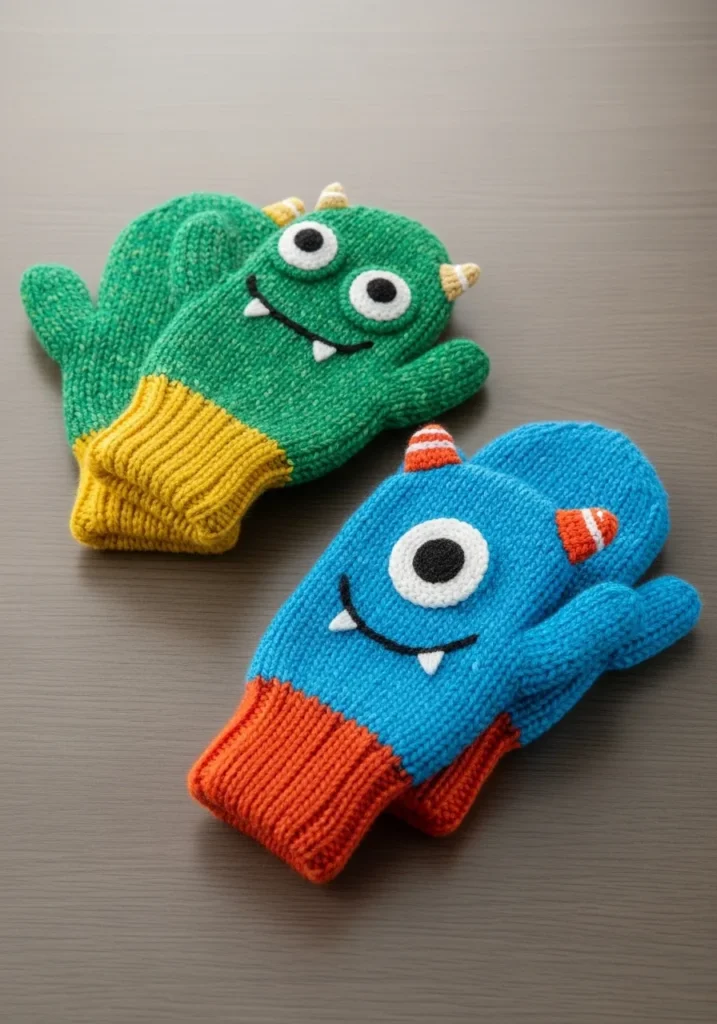 10 Whimsical Monster Mittens With Bright Rib Cuffs