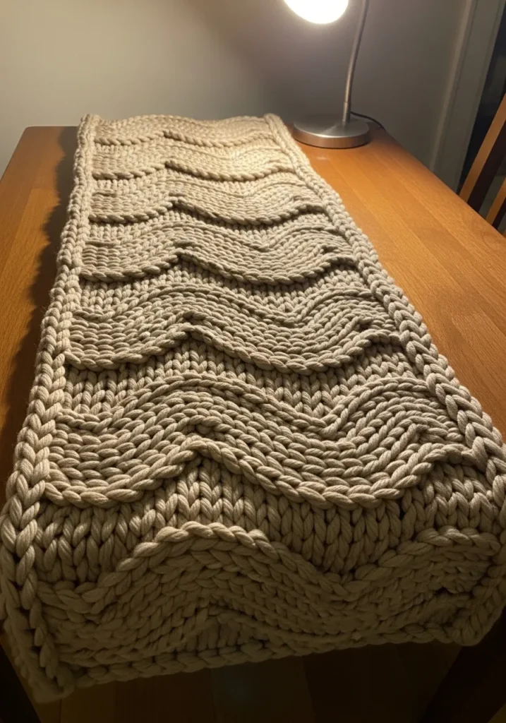 Chunky Knit Wave Pattern Table Runner