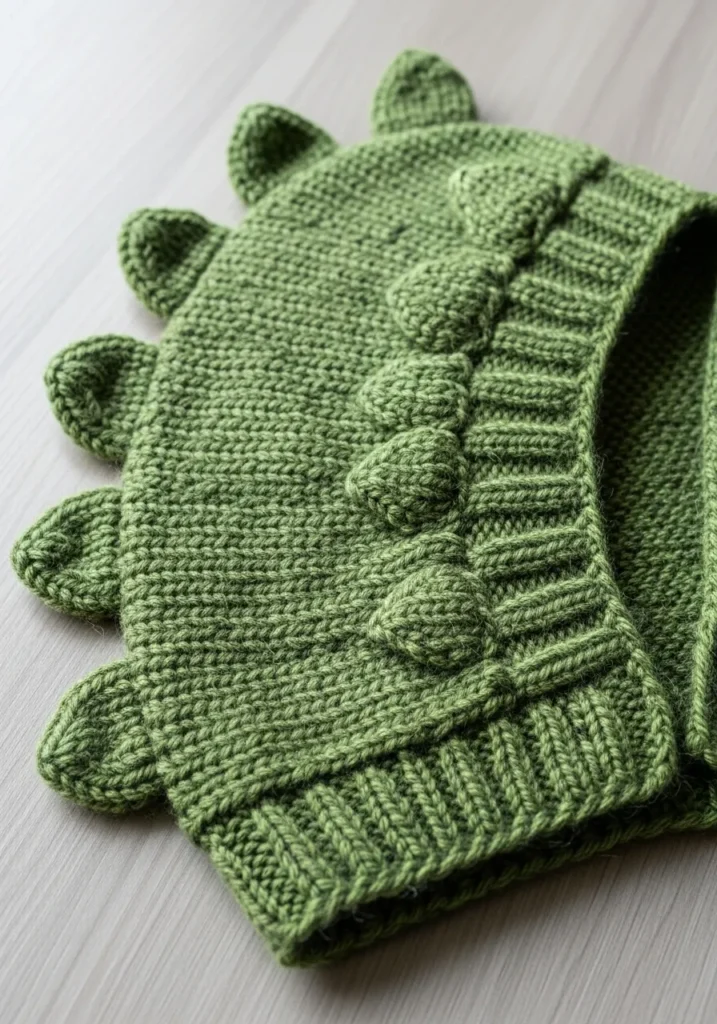 I have such a soft spot for dinosaur inspired knits, and this one is just too cute. If you enjoy adding simple dimensional details to your projects, this hood is such a fun one to try. The spikes are small and repetitive, so it feels achievable even if you are not an advanced knitter. It is cozy, quirky, and guaranteed to bring out a few smiles wherever you wear it.