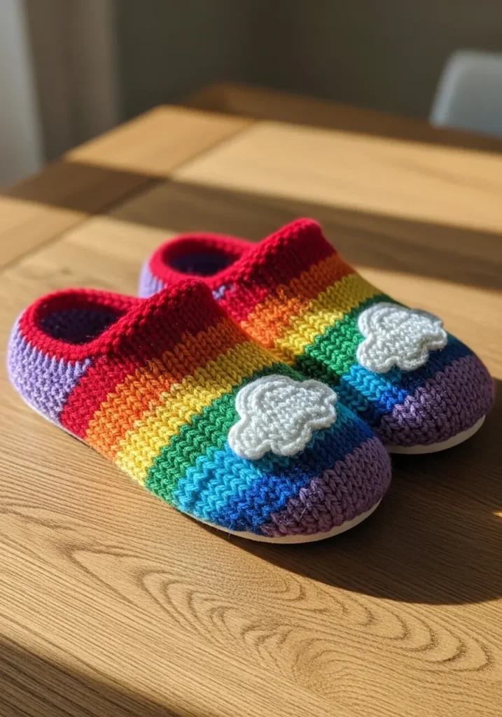 I adore a project that instantly boosts my mood, and these do exactly that. If you enjoy playing with color, this pattern is such a fun way to use up different yarn shades in one go. The stripes are simple to knit, and the little cloud detail feels like the cutest finishing touch. I can totally picture slipping these on during a slow morning and feeling like I am walking around in my own little rainbow.