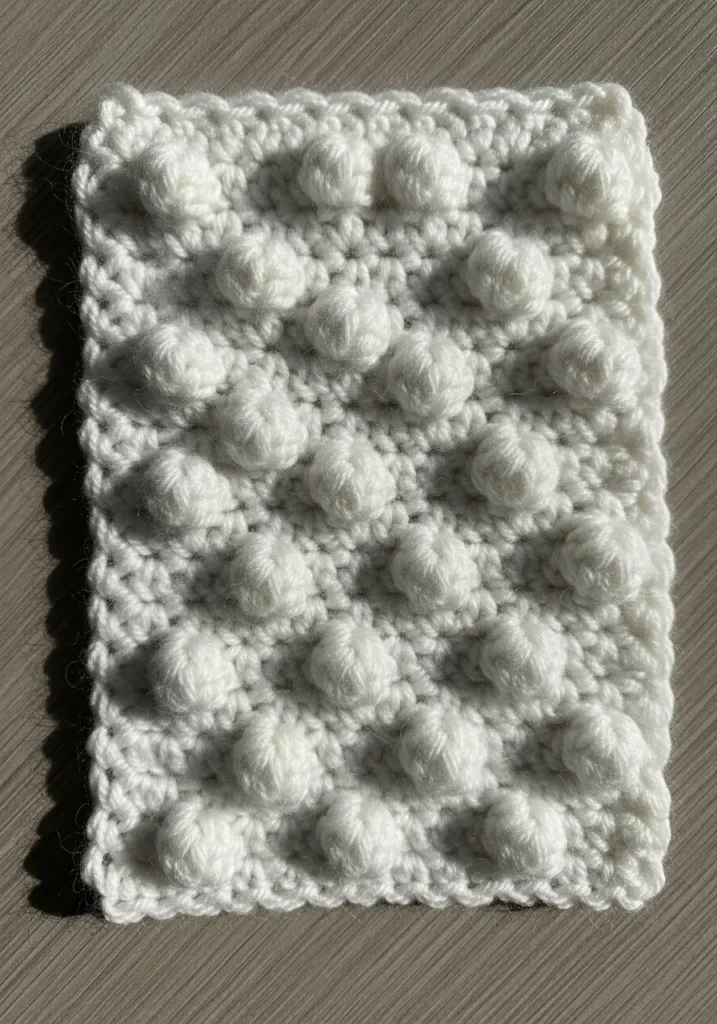 Bobble grids are always a joy for me because they make even a simple square feel playful and modern. The repetition helps me get comfortable with yarn overs and pulling through multiple loops. It feels like a mini challenge that pays off quickly once the pattern clicks. Every time I finish a bobble swatch, I cannot help but run my fingers over it and admire the texture.