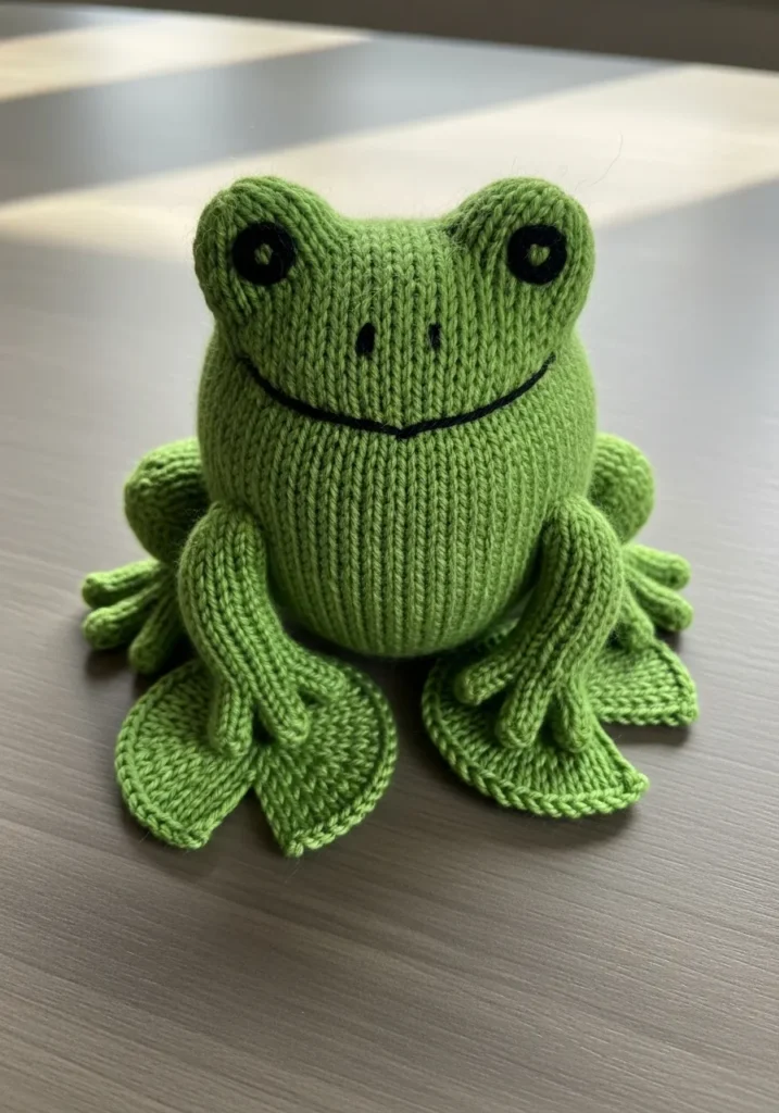 I cannot get over how happy this frog looks sitting on a shelf. It feels like the kind of project that instantly boosts your mood while you are knitting it. The shapes are simple and satisfying, which makes it a great choice if you want something joyful that does not feel overly complicated.