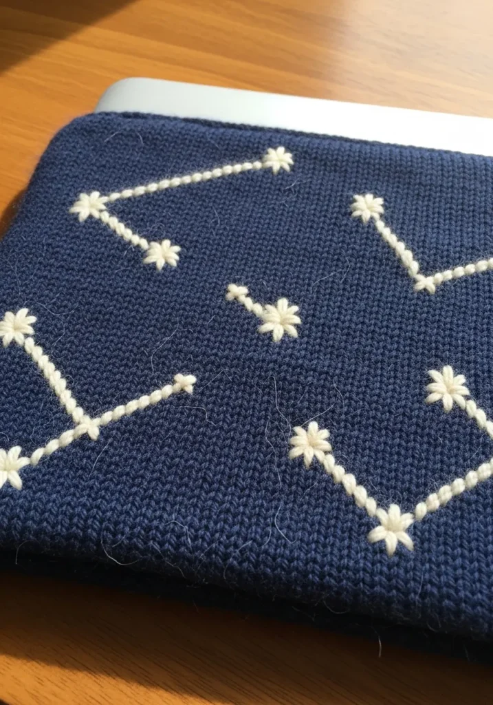 I love how this turns a practical everyday item into something that feels personal and magical. If you are comfortable knitting flat panels and doing basic embroidery, this project is totally within reach. Laptop sleeves are always useful, which makes them easy to sell. I can imagine offering custom constellation patterns based on zodiac signs or favorite star maps. It feels thoughtful, stylish, and perfect for anyone who loves a little celestial touch in their daily routine.