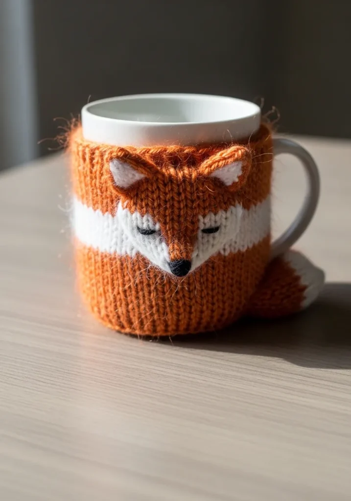 I love projects like this because they turn something totally ordinary into a conversation piece. If you are comfortable with basic knitting and a bit of simple colorwork, this is such a fun item to try. Mug cozies are small, quick to make, and perfect for gifting, which makes them great sellers at markets or online. Add a few different animal versions and you have a whole woodland collection that people will not be able to resist.