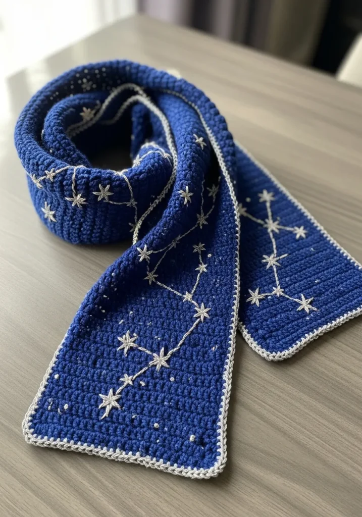 Midnight Sky Starry Crochet Scarf