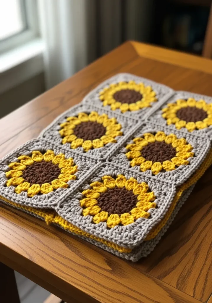 I have always had a soft spot for granny squares, especially when they showcase something as happy as sunflowers. If you enjoy working in small sections that come together beautifully at the end, this project is such a rewarding choice. I love how each square feels like a tiny accomplishment on its own. When they are all joined together, the final scarf feels bold, bright, and full of personality.