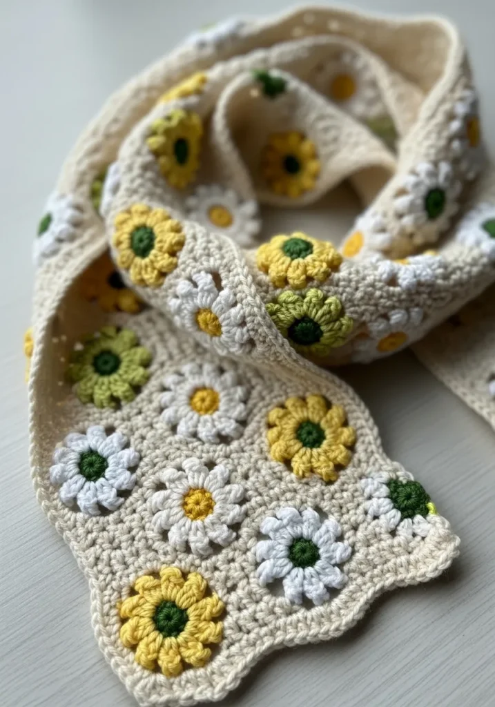 Daisy Bloom Crochet Scarf