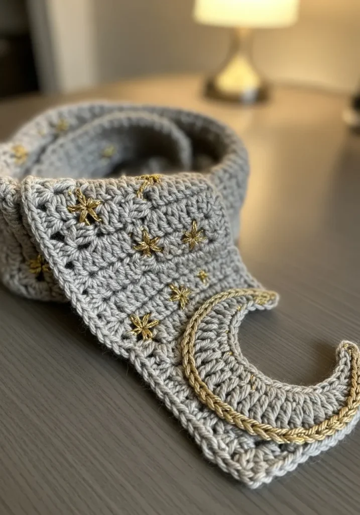 If you are into subtle statement pieces, this design feels magical without being over the top. I find star patterns so calming to crochet because they repeat in a steady rhythm and look stunning once finished. I would happily wrap this around my neck on a cool evening and feel like I am carrying a little piece of the night sky with me.
