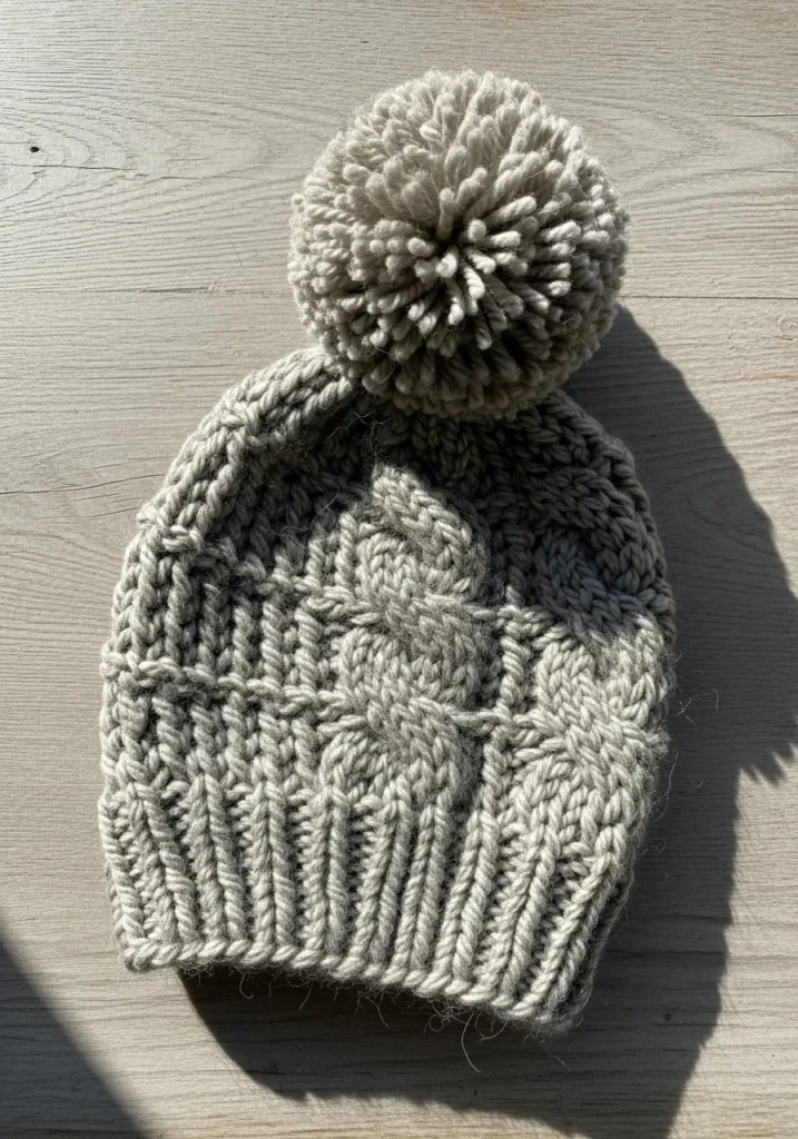 I love this beanie because it feels like a big reward without a ton of effort. Chunky yarn means it knits up fast, and the cable looks impressive even though it is easier than it seems. If you are into cozy winter makes that you can actually finish in a weekend, this one is such a feel good project. It is warm, cute, and the pom pom is always the fun part at the end.
