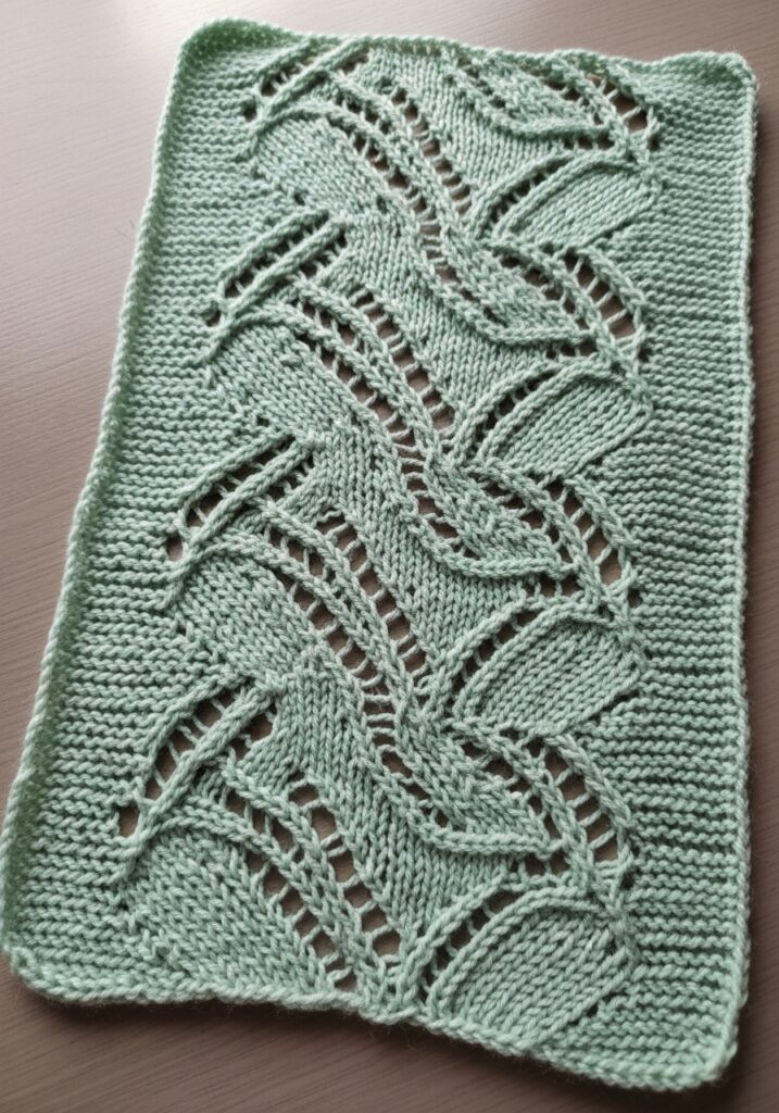 Allover Leaf Stitch Knitting Swatch in Apple Green