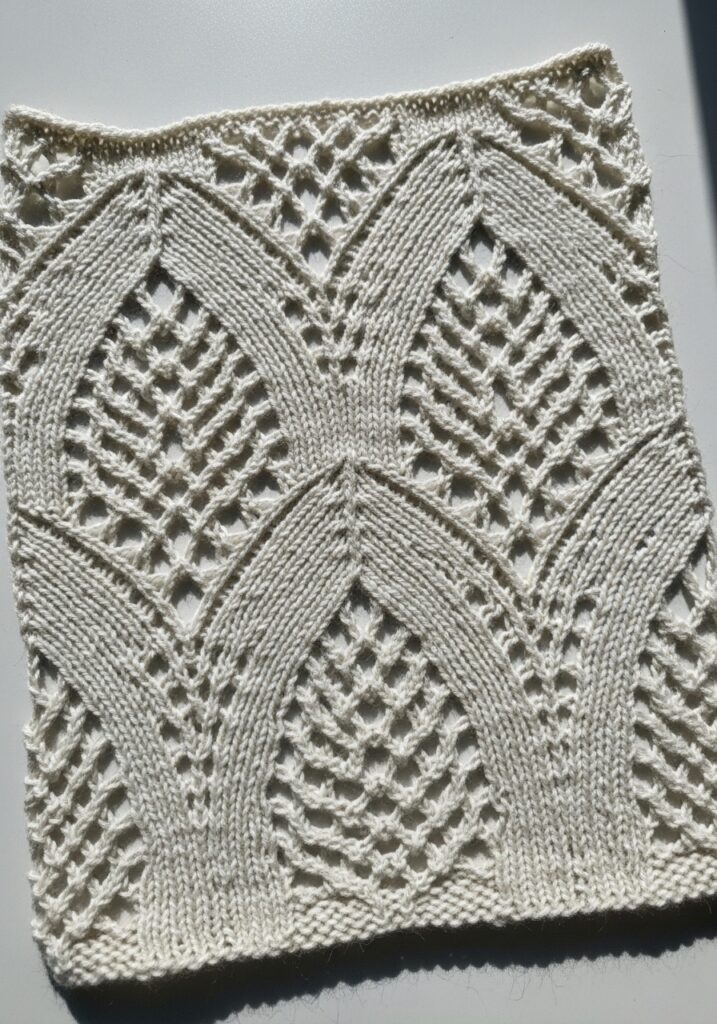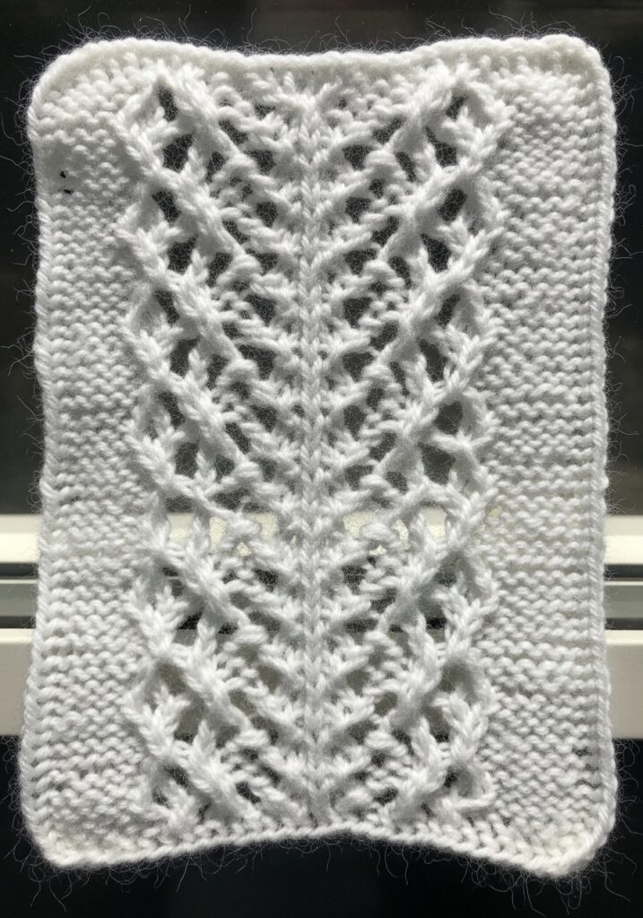 White Lace Leaf Knitting Stitch Swatch