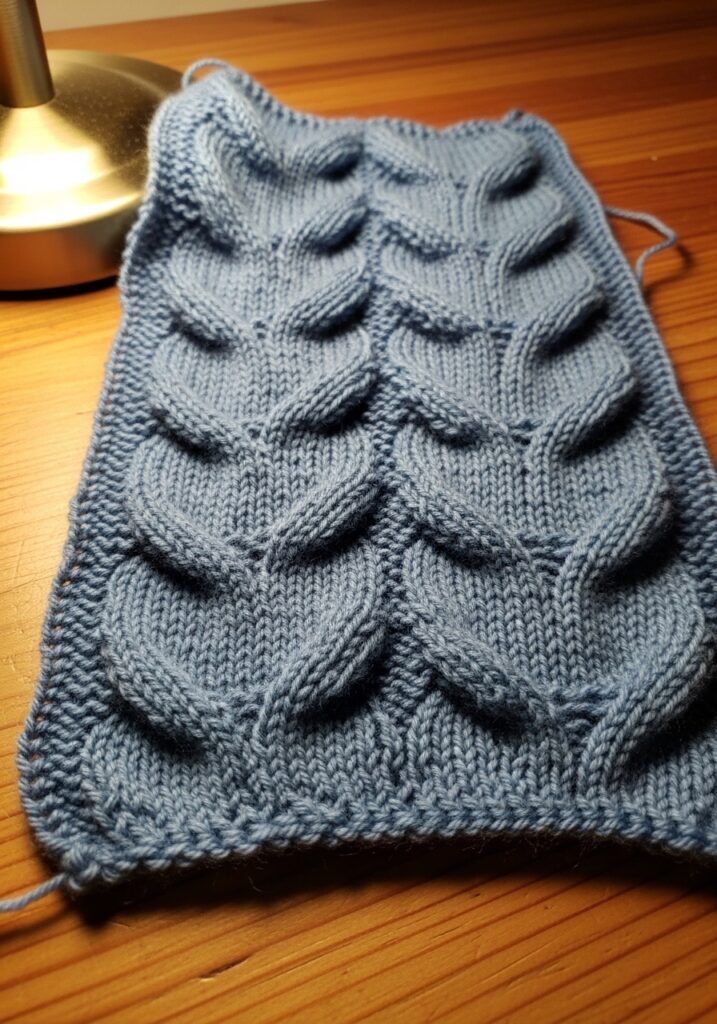 Leaf Cable Knitting Stitch in Steel Blue
