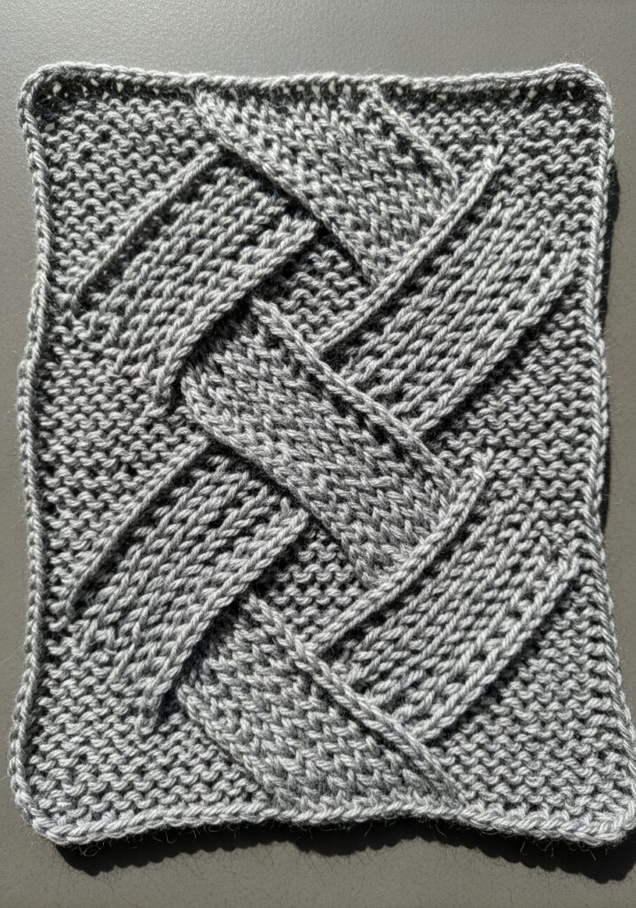 7 Celtic Knot Cable Knitting Swatch in Heather Grey