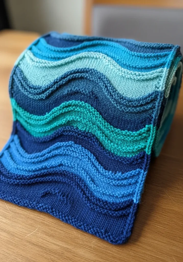 I love this kind of project because it feels soothing just looking at it. The wave pattern adds interest without being overly complicated, so it is exciting to knit row after row. If you enjoy watching colors blend and build into something eye catching, this is such a satisfying make. It is cozy, artistic, and just different enough to keep your knitting spark alive while still being totally practical for everyday snuggling.