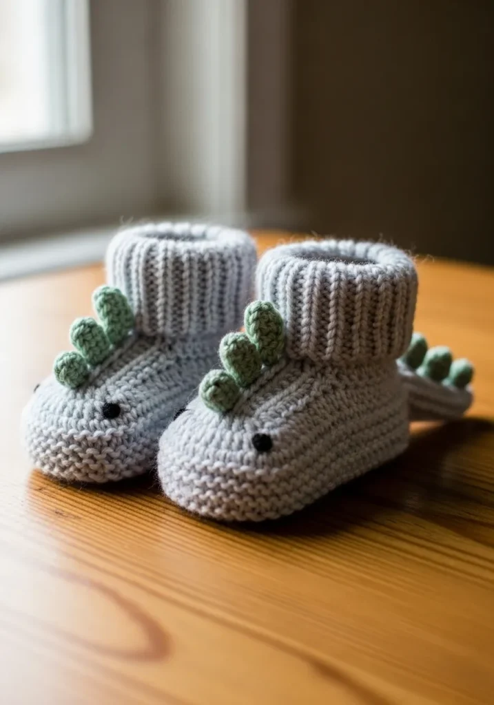 Tiny Dinosaur Knit Baby Booties