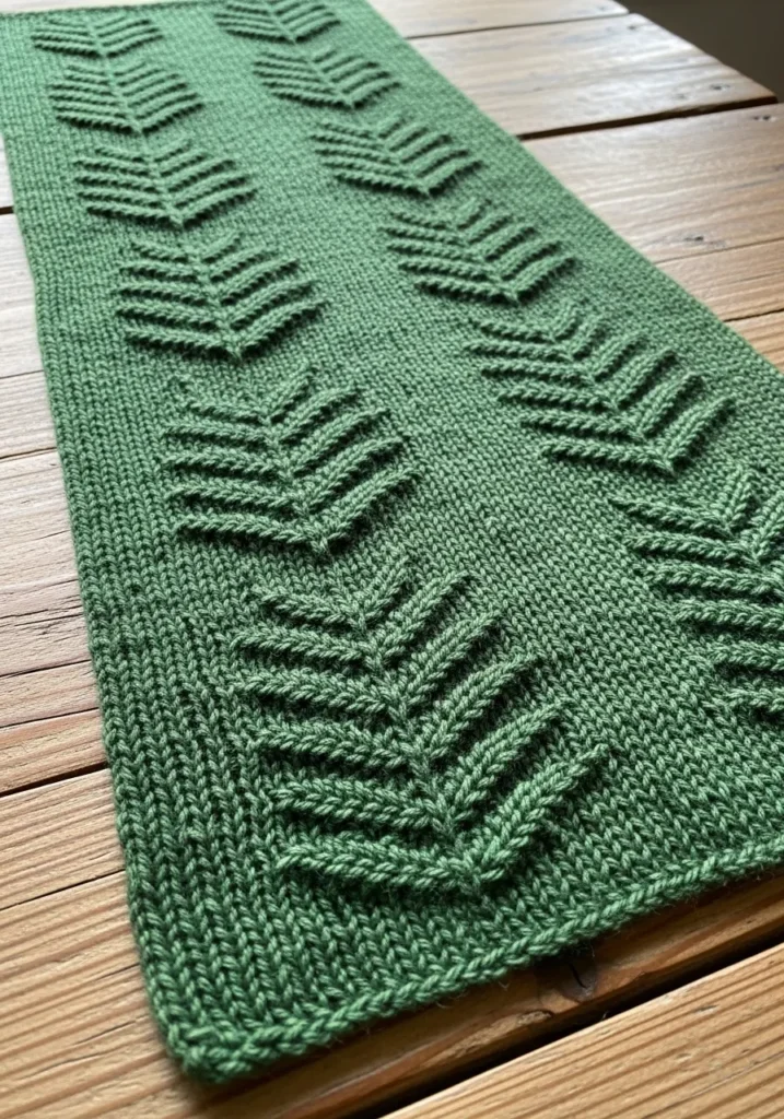 Textured Fern Leaf Knit Table Runner