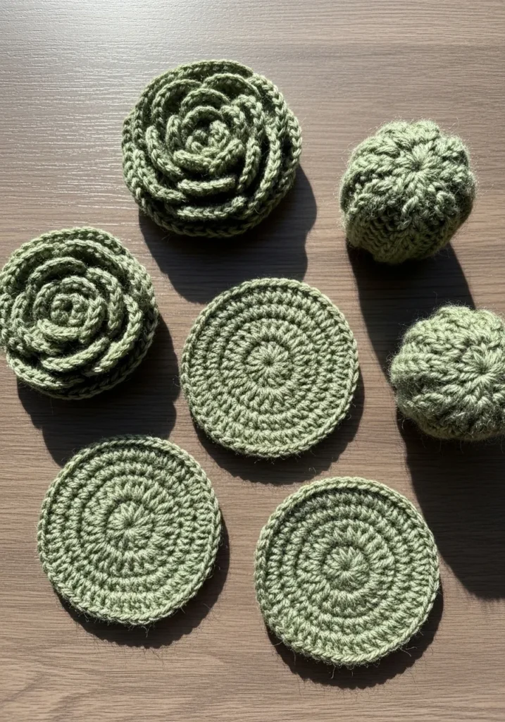 I love how these feel like little pieces of garden decor for your coffee table. The circular shapes are simple and relaxing to knit, and you can experiment with petal textures to keep things interesting. If you enjoy small projects that come together quickly, this set is such a satisfying choice. They are cute, useful, and perfect for adding a subtle handmade touch to your home.