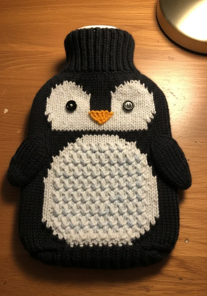 I love when practical items get a playful makeover like this. The base shape is simple to knit, and then you get to add all those adorable details that make it special. If you enjoy making gifts that are both useful and full of character, this penguin cover is such a fun idea. It turns a regular hot water bottle into something that feels cozy, cheerful, and totally handmade with love.