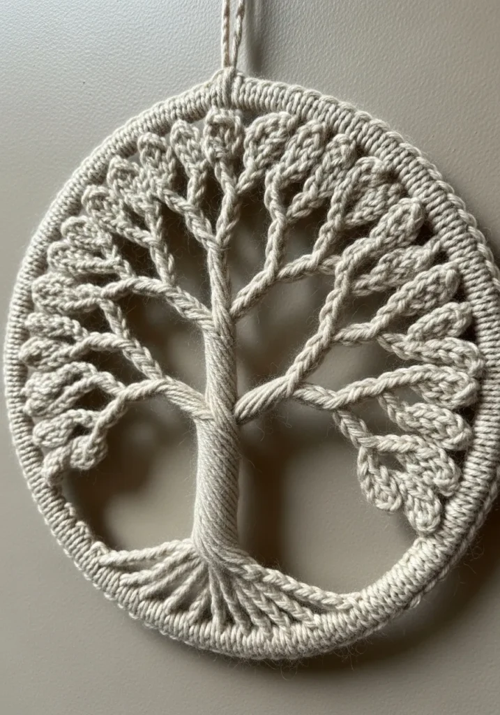 I love projects that double as art, and this one feels so meaningful. The circular frame and branching pattern make it interesting to knit without feeling overwhelming. If you enjoy pieces that look intricate but use simple stitch techniques, this is such a rewarding make. It brings warmth and a handmade touch to any space, and it feels extra special knowing you created something so symbolic with your own two hands.