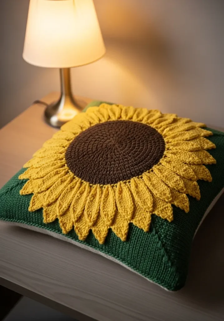Bold Sunflower Knit Cushion Cover