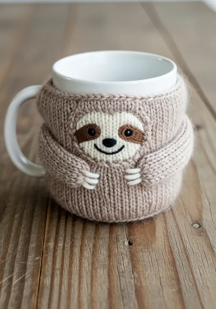 Snuggly Sloth Knit Mug Cozy