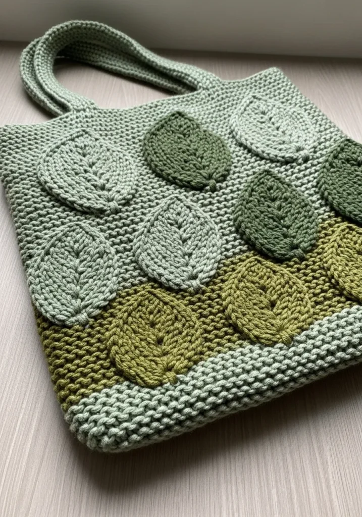 Nature Inspired Leaf Motif Knit Tote Bag