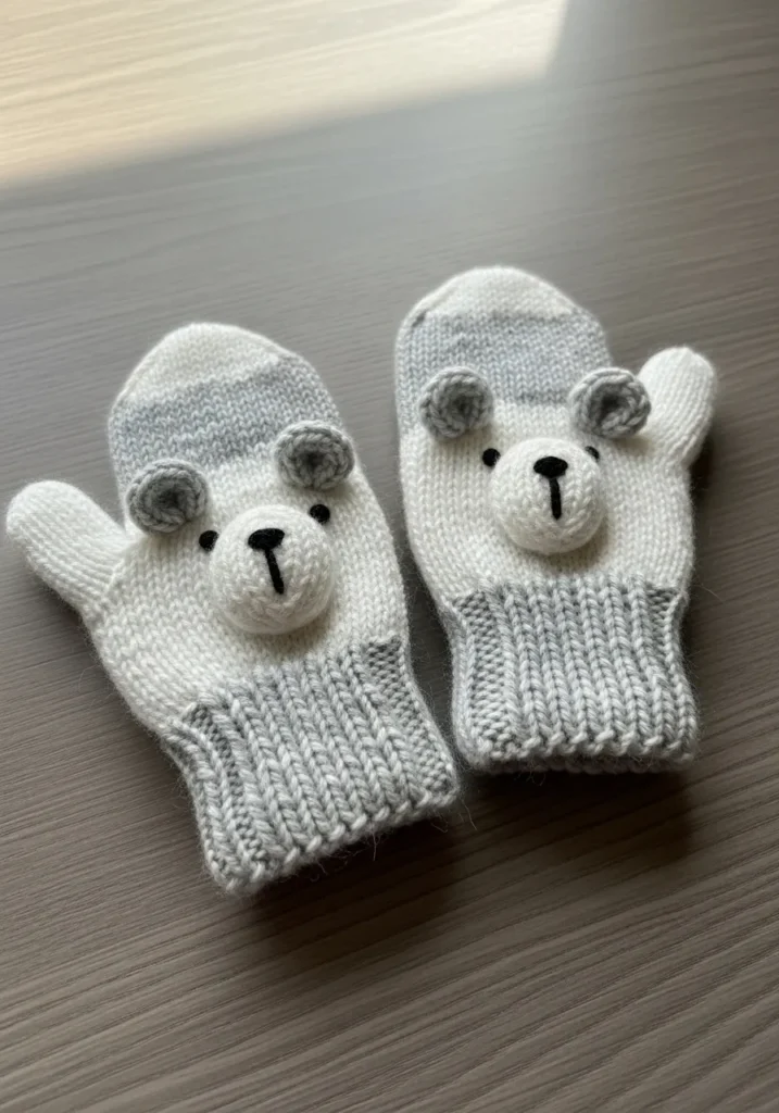 Adorable Bear Knit Mittens