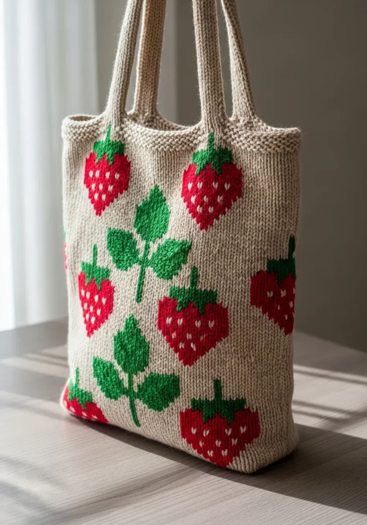 I absolutely love projects like this because they turn something everyday into something joyful. Carrying a handmade bag with bright strawberries on it would make even a quick grocery run feel cute and intentional. It is such a fun way to practice colorwork without committing to a full sweater, and I can already imagine customizing mine with different fruits depending on the season.
