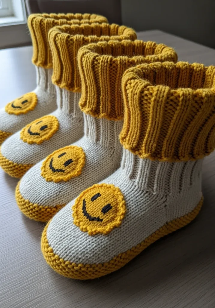 If you are into practical projects that still feel fun, this one is such a winner. The basic sock shape helps build skills step by step, and adding the smiley detail is like the cherry on top. I always feel extra accomplished when I can wear something I made around the house.