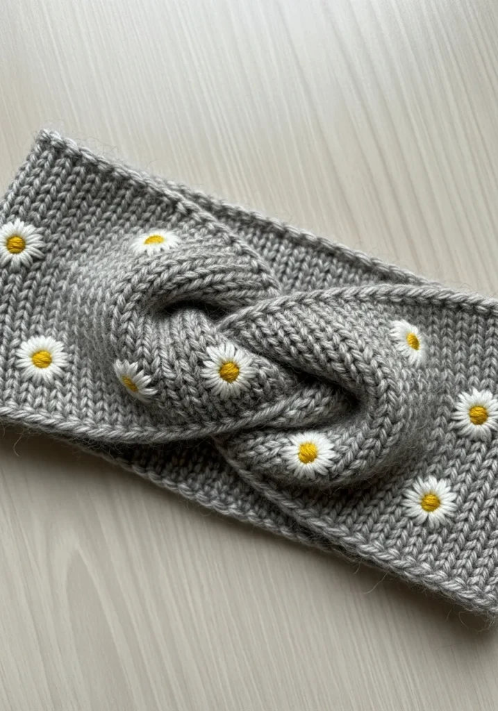 I always reach for headbands when I want a quick project that still feels special. This one feels fresh and playful, and those little daisies make it impossible not to smile. It is the kind of accessory I would knit in multiple colors because it is fast, cute, and actually useful.