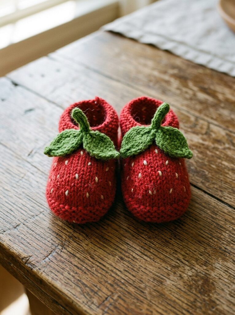 I find baby knits so satisfying to make at the best of times, but these booties feel extra special because the strawberry concept is so creative and the result is so jaw droppingly cute that the whole process feels really joyful from beginning to end. Baby booties are one of the fastest knitting projects you can take on since they are so tiny, which means you can have a finished pair in your hands within a single evening of relaxed knitting. The leaf detail at the top is knitted separately and sewn on afterwards which is a nice little bonus craft moment at the end. I genuinely cannot think of a better handmade baby shower gift because these booties are the kind of thing that makes people gasp out loud the moment they see them.