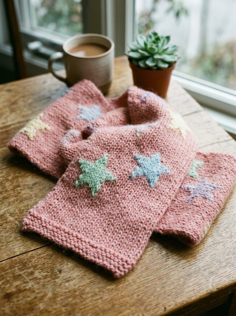 This is the kind of project I genuinely get excited about starting because it hits that perfect sweet spot of being simple enough to knit while watching TV but interesting enough that you actually stay engaged the whole time. The little stars are added using the intarsia method which sounds complicated but is honestly much more approachable than most people think, especially on a small project like a cowl. I love that the pastel color combination feels fresh and modern rather than babyish, and the finished piece looks like something straight off a Pinterest board that already has a million saves. If you want a quick win that also looks genuinely stunning, this cowl is absolutely your project.
