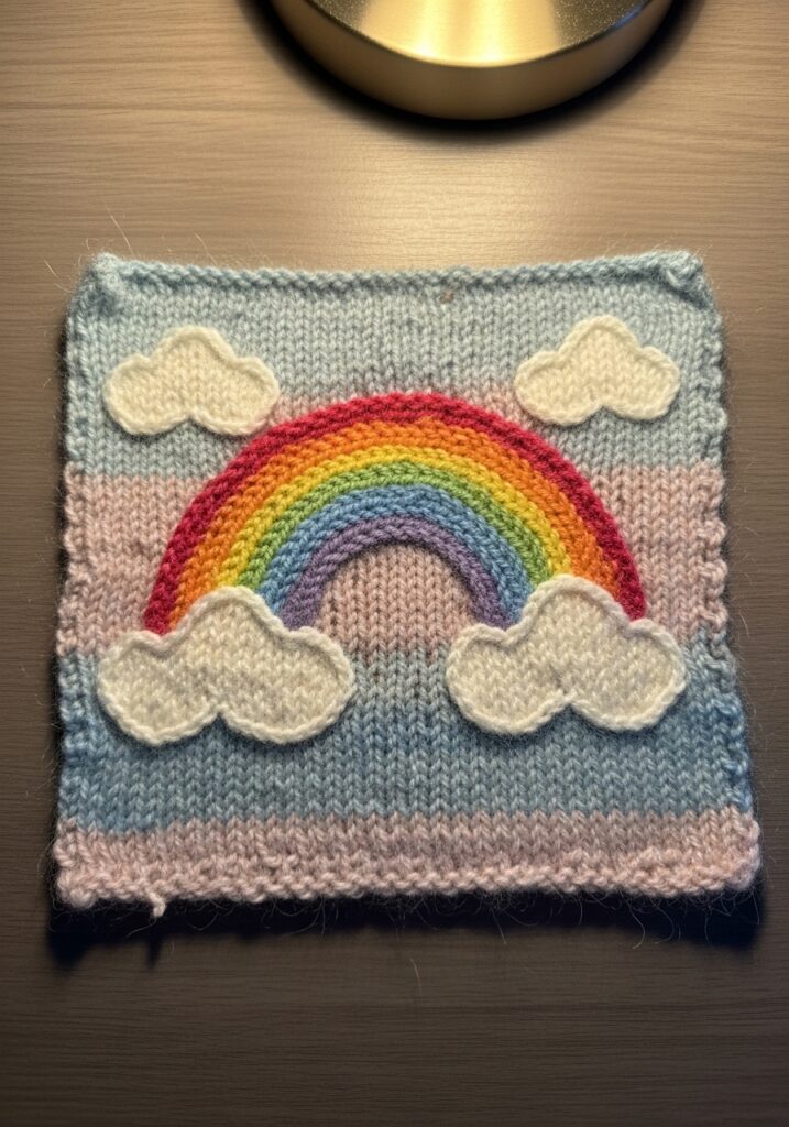 Rainbow and Clouds Knitted Square Motif