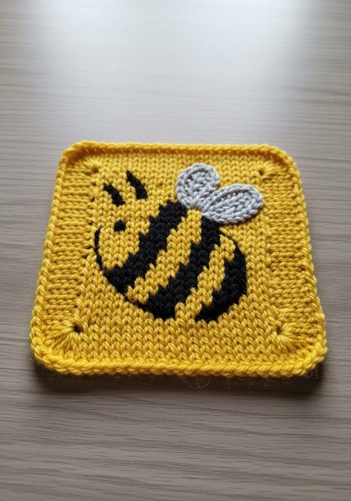 Bumblebee Colorwork Knitted Square