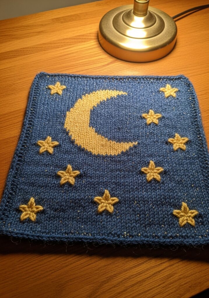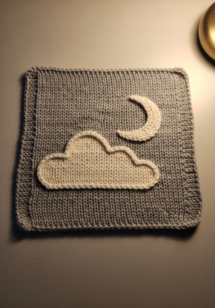 Dreamy Cloud and Crescent Moon Knitted Square