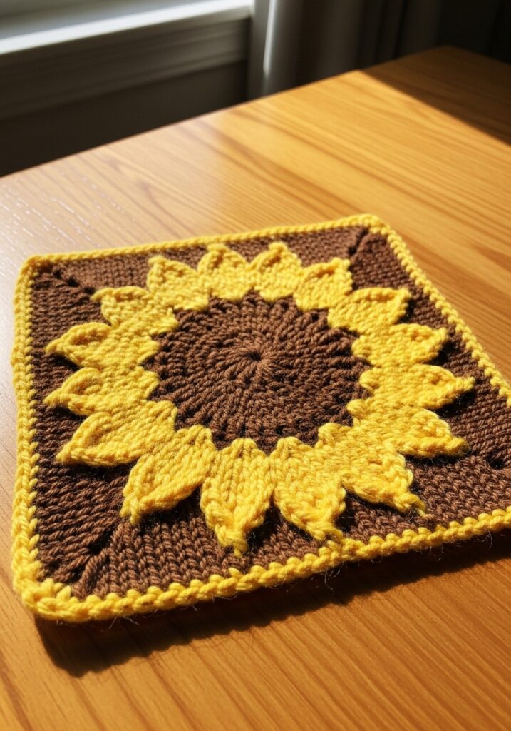 15 Sunflower Square Knitted Motif