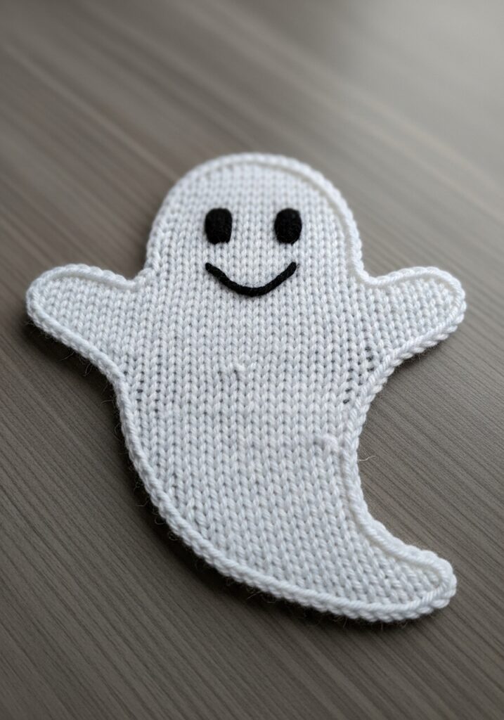 I am a huge fan of this motif because it proves that Halloween knitting does not have to be complicated or spooky to be completely effective and adorable. The shaping is done through simple increases and decreases that give you that ghost silhouette without any complicated techniques, and the face embroidery takes about two minutes to add at the end. I think a whole string of these sewn onto Halloween bunting would look absolutely magical, and they also make the sweetest little appliqués for trick or treat bags, children’s cardigans, or knitted pouches filled with sweets as gifts. Making a batch of these while watching a Halloween film is basically my idea of a perfect October evening.