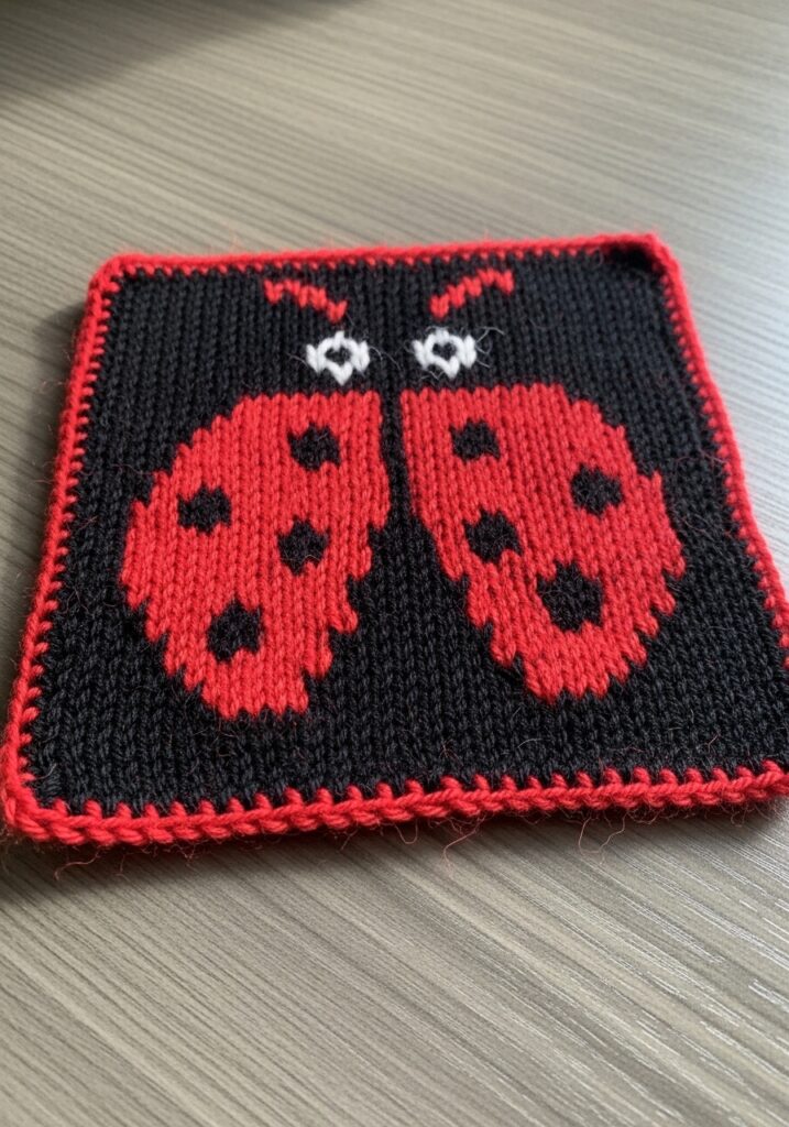 Bold Ladybug Colorwork Knitted Square