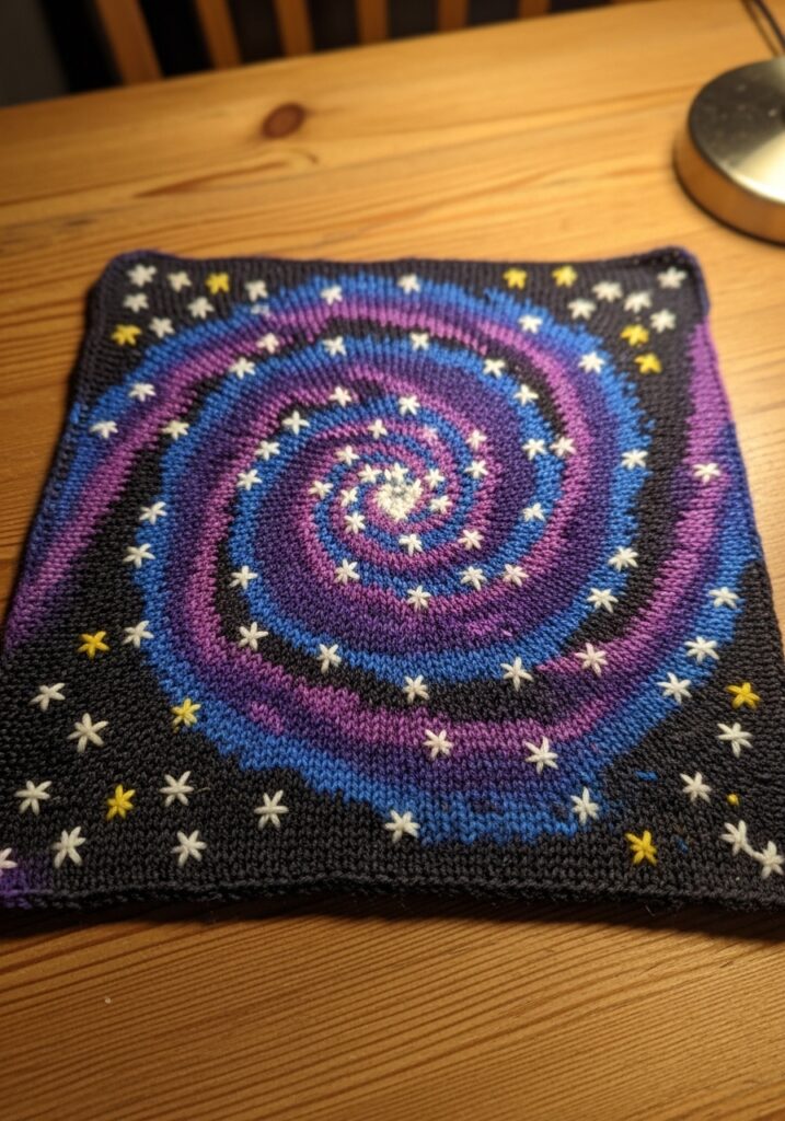 Spiral Galaxy Knitted Square Motif