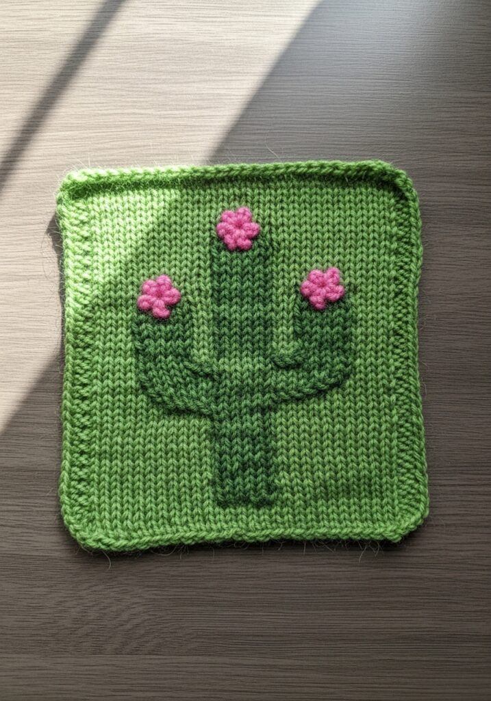 Flowering Cactus Tonal Knitted Square