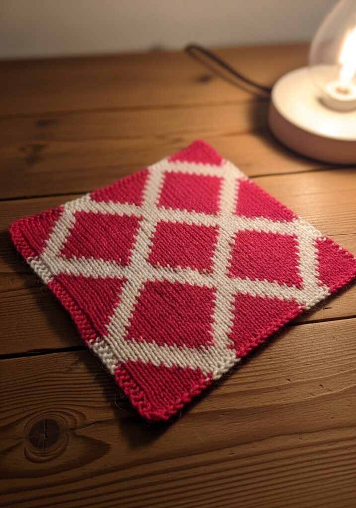 This is genuinely one of my favorite styles of knitting to recommend to people who are just getting into colorwork, because the two-color repeat means you are never juggling more than two strands at once. Once you get into the rhythm of the heart repeat, the rows fly by faster than you would expect. I think this square would be absolutely gorgeous as part of a patchwork blanket, a cushion front, or even a book sleeve for your Kindle or journal. It also makes a seriously sweet Valentine’s gift when sewn up into a little pouch. If pink is not your thing, picture this in deep burgundy and forest green for the most festive Christmas version imaginable.