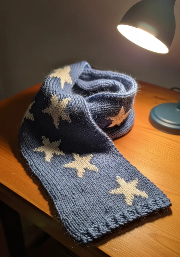 If you are into knits that feel calming but still a little magical this one is such a joy. I love how the stars break up the knitting and make the project feel playful without being complicated. It is easy to settle into a rhythm and watch the pattern grow which makes it perfect for evening knitting. Finishing a scarf always feels satisfying and this one feels special enough to keep or gift without a second thought.