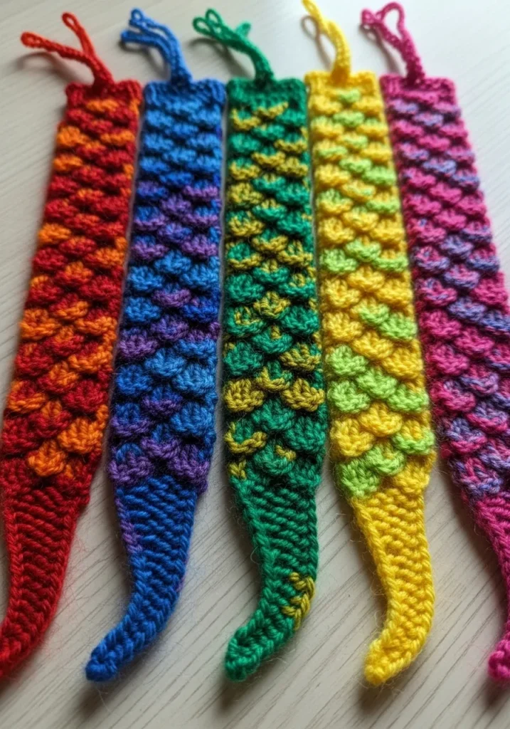 Knitted Dragon Tail Bookmarks In Rainbow Colors
