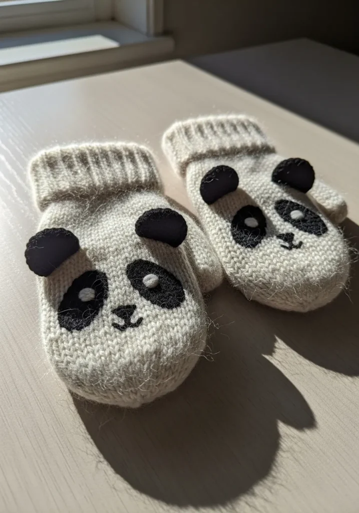 Knitted Panda Baby Mittens With Cute Face Details