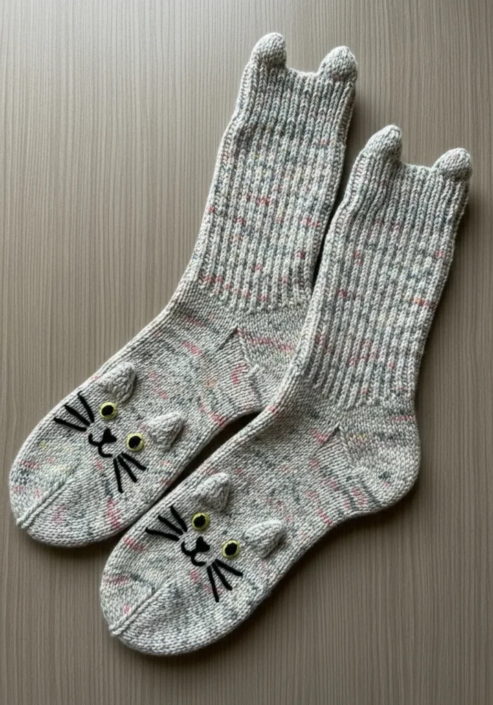 Knitted Cat Face Socks With Playful Ear Details