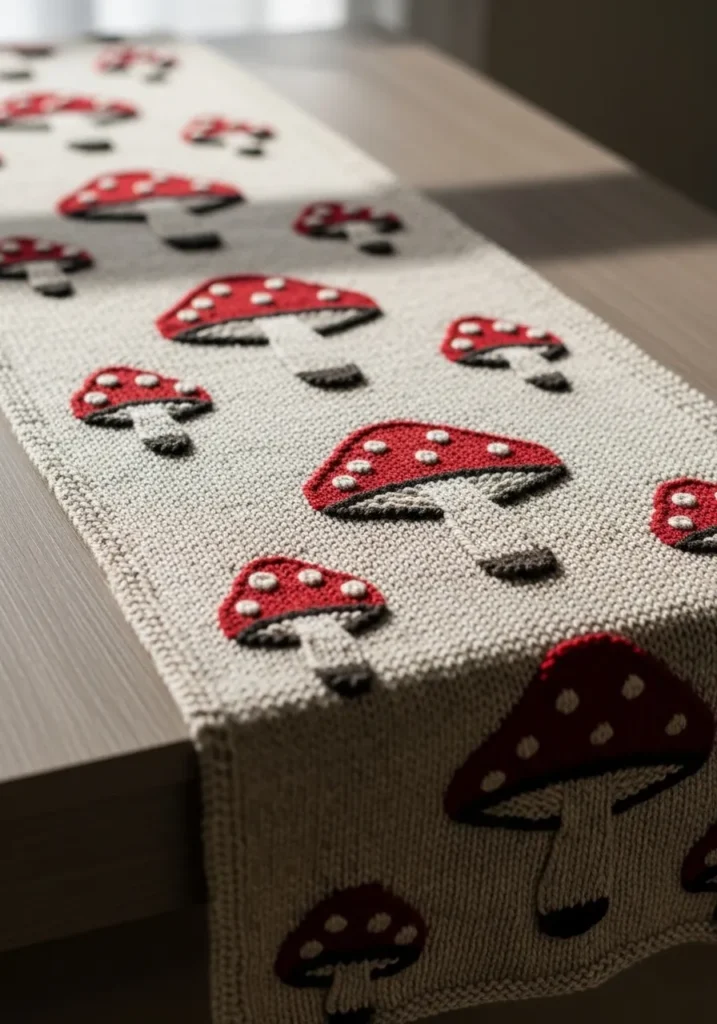 Knitted Mushroom Table Runner