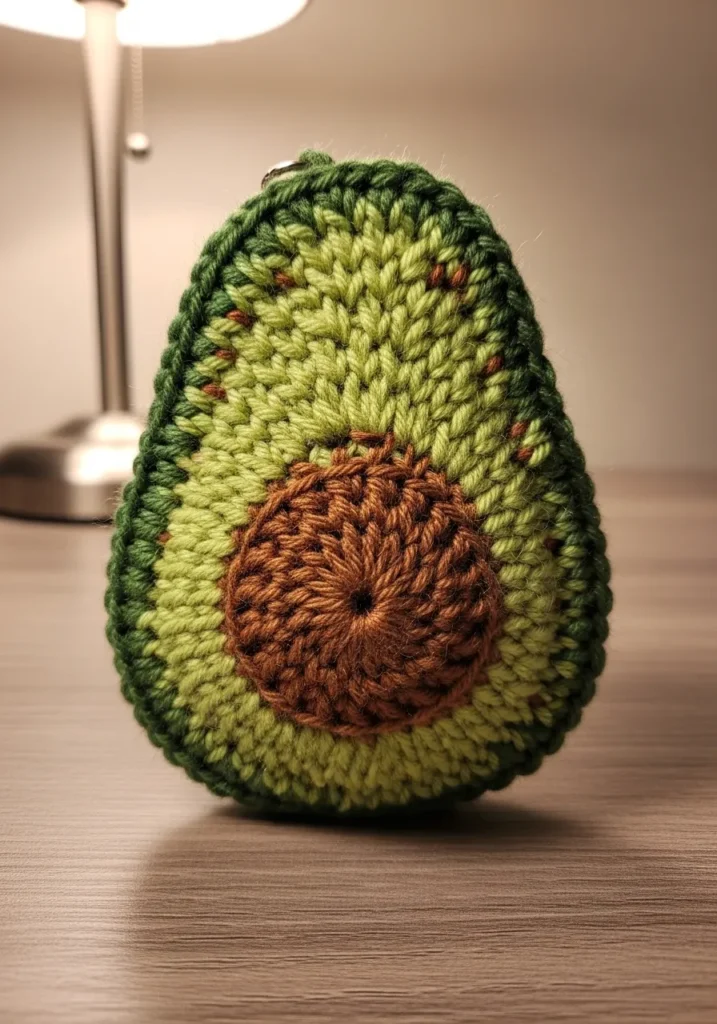 Knitted Avocado Keychain Pouch With Textured Seed