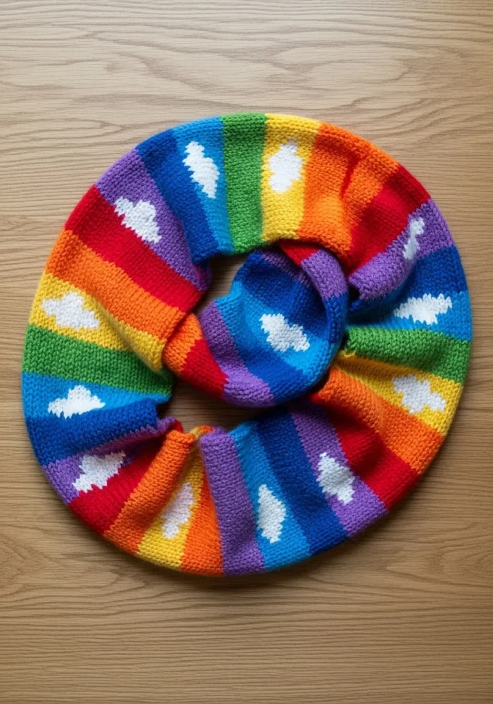 Rainbow Cloud Infinity Scarf With Seamless Join