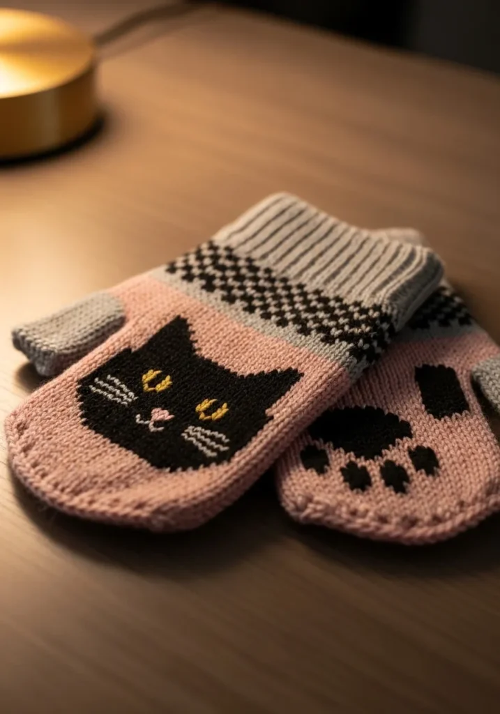 I cannot resist cute accessories like this. Knitting mittens with fun motifs makes the whole process feel lighthearted and creative. Some people love simple solids, but I always reach for patterns that make me smile every time I wear them.