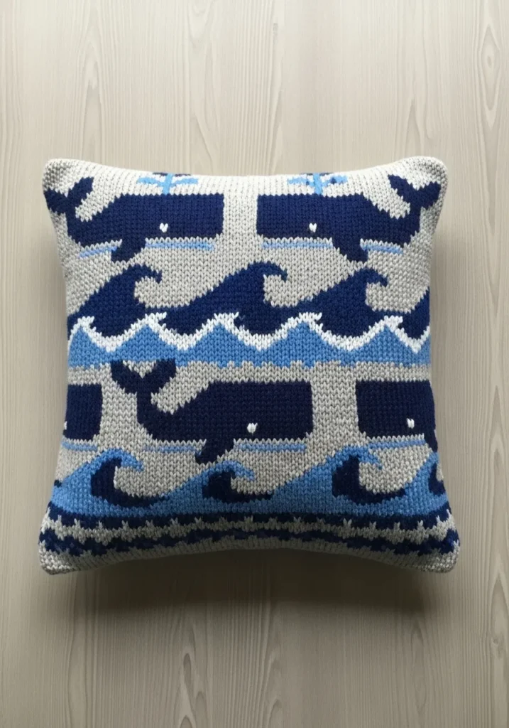 Some people love subtle decor, but I adore a pillow that tells a story. The whale motif feels fresh and graphic, and it is such a creative way to bring Fair Isle into home styling. I can just imagine this on a couch in a bright living room, instantly adding character and a handmade touch.